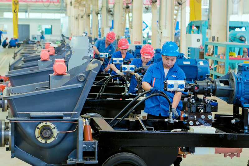 HBT-12D型泵送式濕噴機,是我公司結合混凝土泵送式輸送和稀薄流輸送的優點,研制開發的液壓泵送式濕噴機系列產品之一。該機采用液壓傳動,以泵送方式將砼輸送至一定距離 或至噴頭處,再用壓縮空氣將砼噴射到支護面上。同時,在噴頭處加入適量速凝劑與砼混合,速凝劑的添加量通過計量泵調節。采用三泵結構,換向速度快,脈沖···