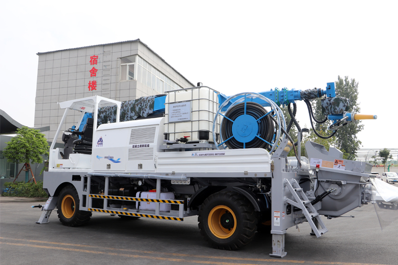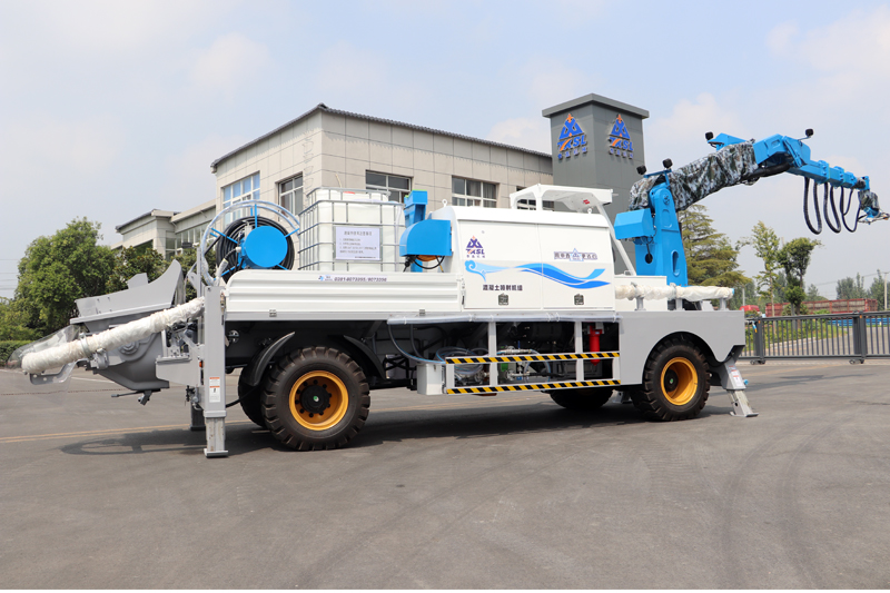 該機配備速凝劑抽吸裝置,可以快速將施工工地零散的液態(tài)速凝劑抽吸至車載速凝劑桶中,使用方便